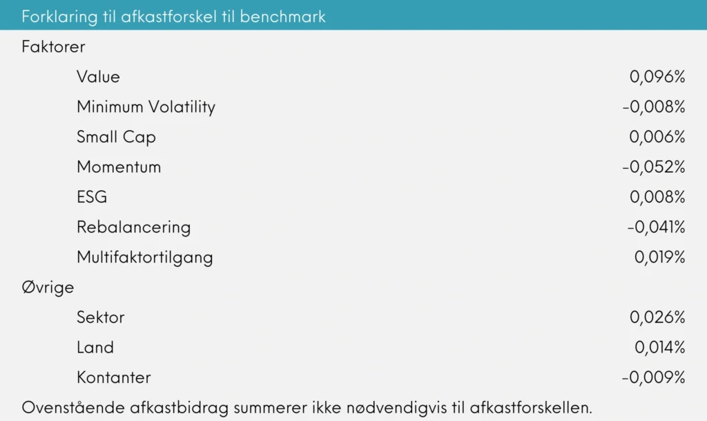 ESG-faktoren har også leveret et overraskende godt bidrag i 2025. Hvor faktoren tidligere har haft små udsving, ser vi nu en mærkbar positiv effekt på afkastet.