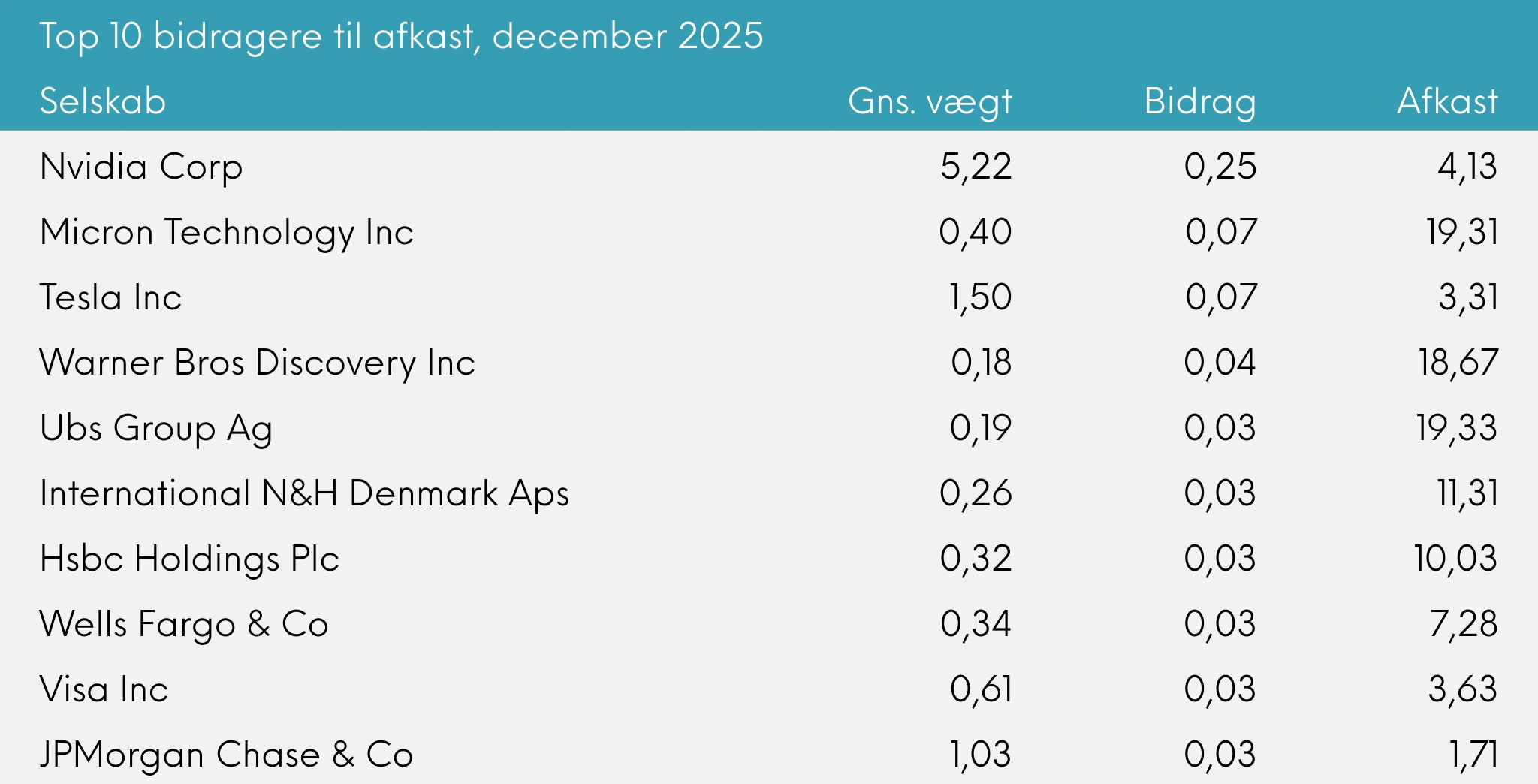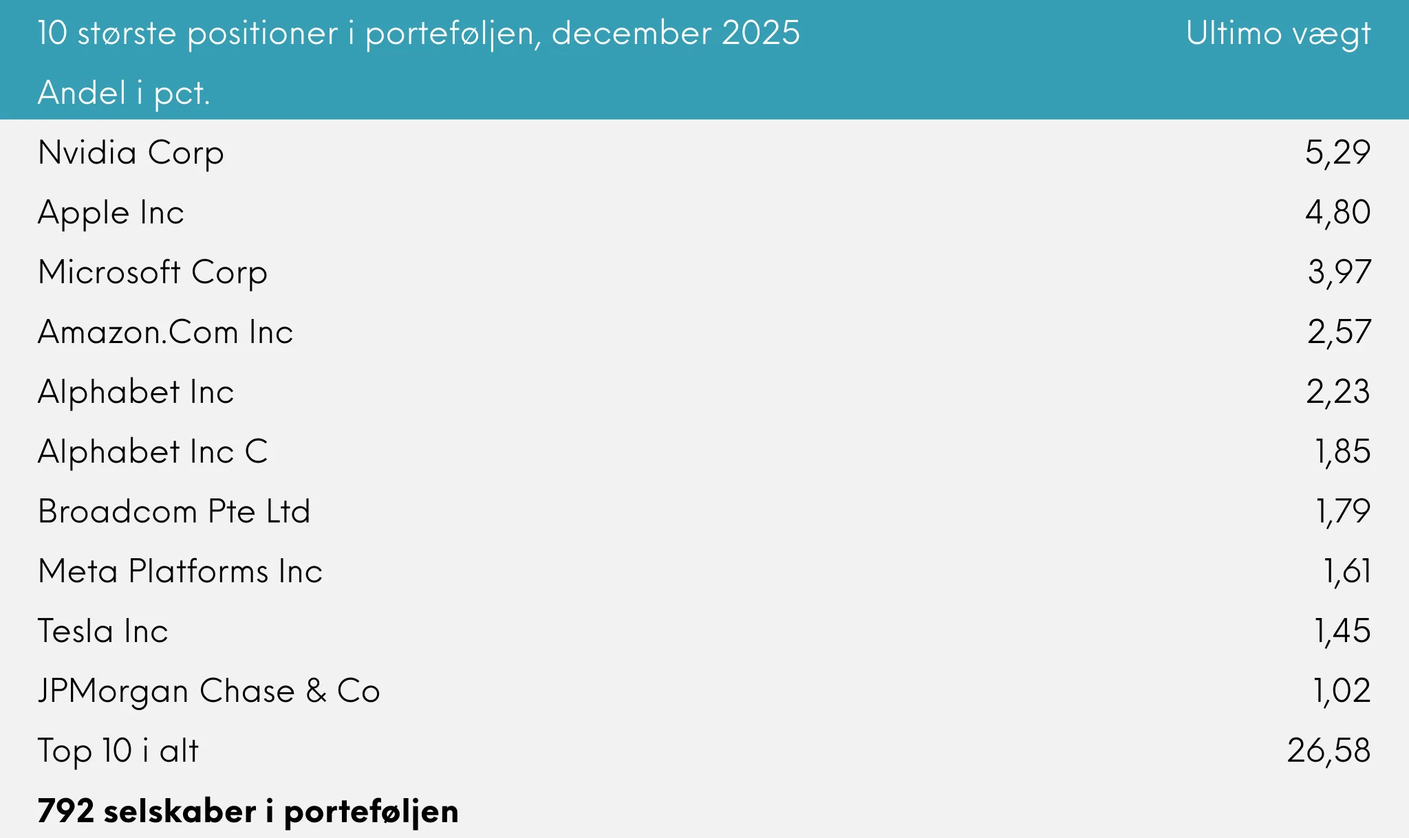 Vi takker for den fortsatte tillid og ser frem til at fortsætte med at skabe attraktive risikojusterede afkast i 2026.
