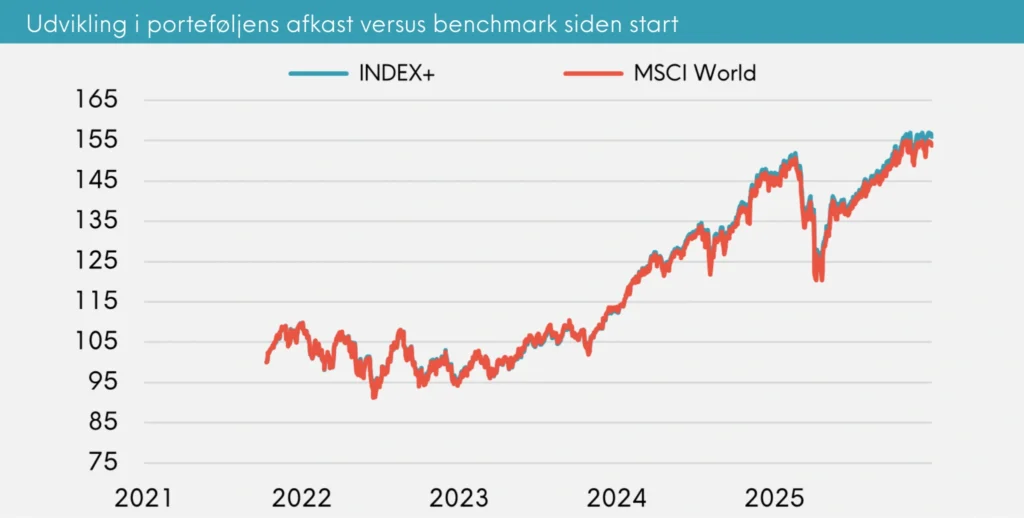 Året har været karakteriseret ved betydelige udsving på de globale aktiemarkeder. Særligt foråret bød på udfordringer da markedet faldt markant. Her viste Minimum Volatility-faktoren sin styrke ved at begrænse faldet, så INDEX+ præsterede bedre end det brede marked. Resultatet for 2025 bekræfter, at vores faktorer komplementerer hinanden rigtig godt og sammen skaber et højere risikojusteret afkast end benchmark.